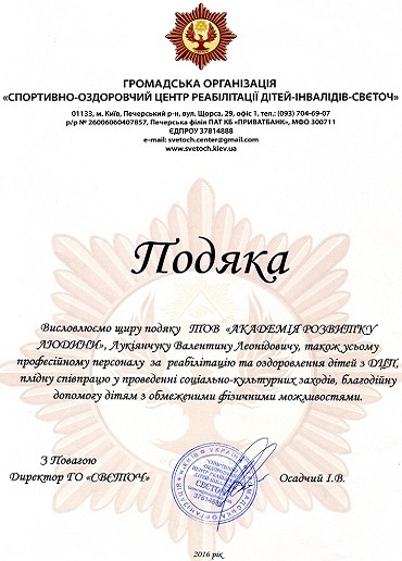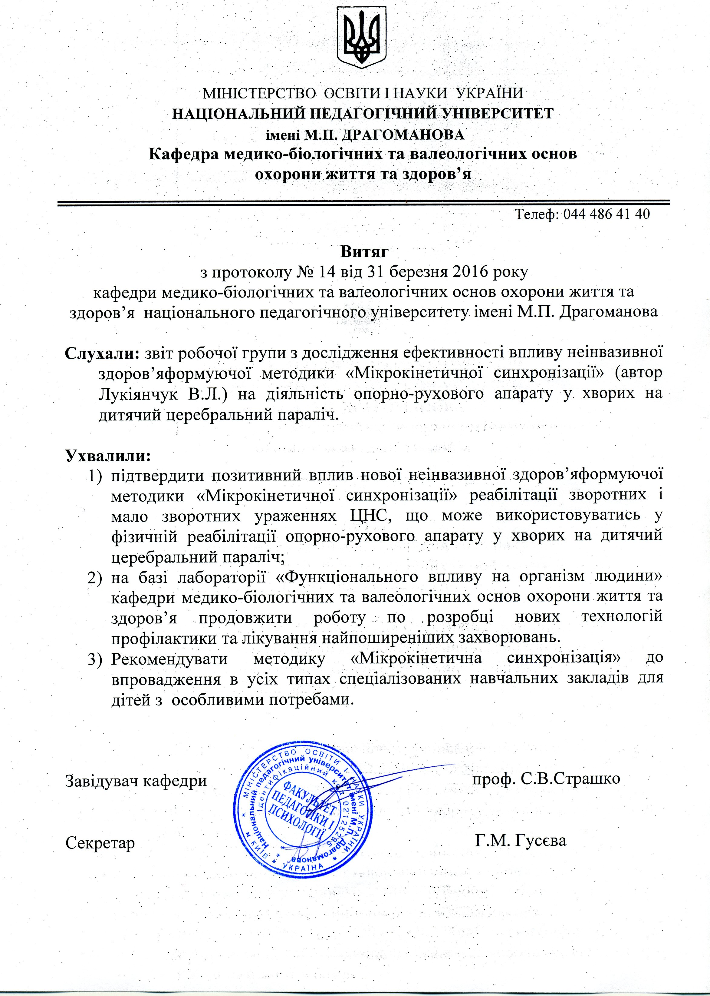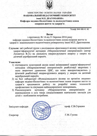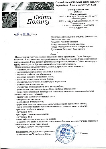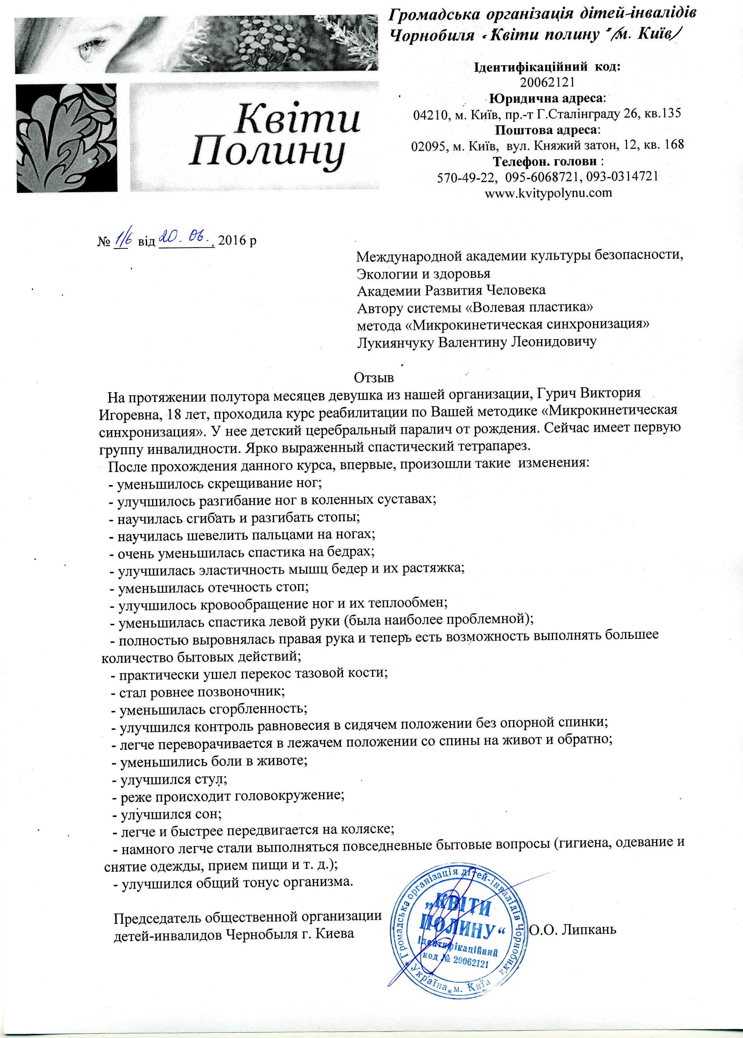 Во время прохождения у Лукиянчука Валентина Леонидовича, по его методике было заметно улучшение психическое, умственное и опорно-двигательное состояние ребенка.
